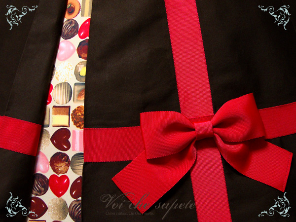 まるでふたを開けるように、プリーツの奥からチョコレートがのぞく、天使からの甘い贈り物をイメージしたワンピースです。