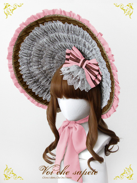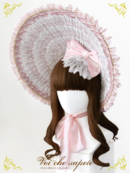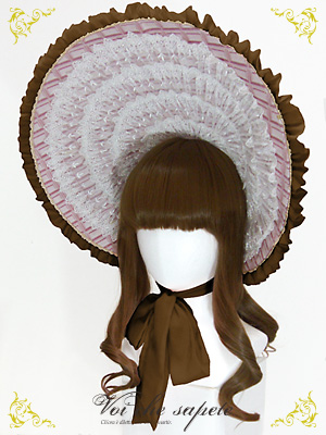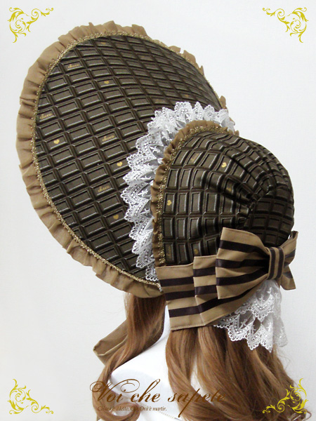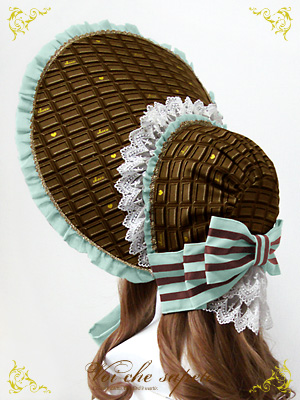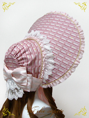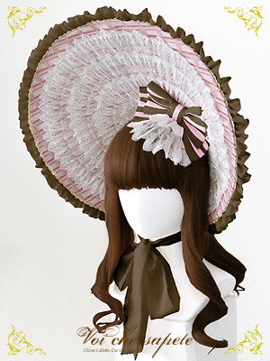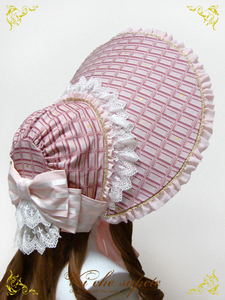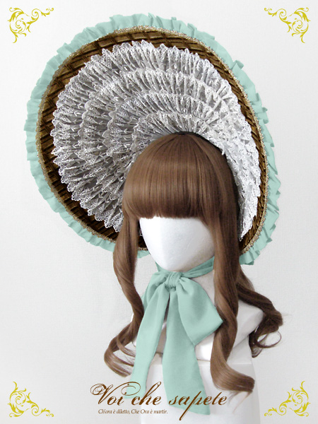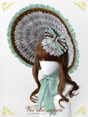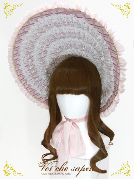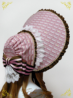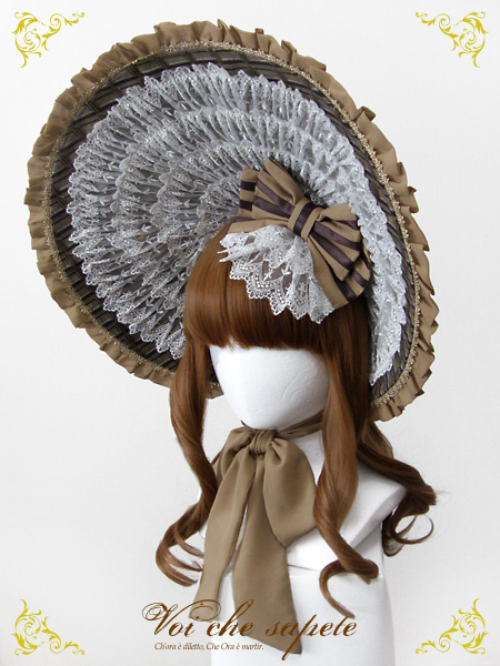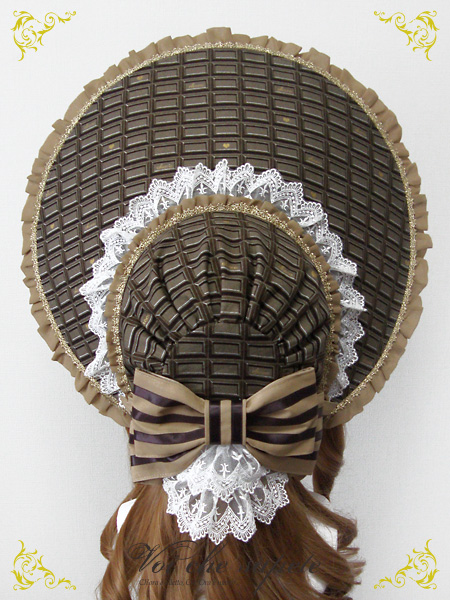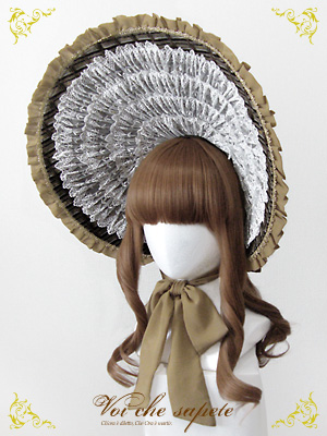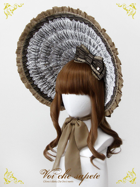 幾重にも重なったレースがとても華やかなボンネットは、大きなつばがアンティークドールを思わせるクラシカルな雰囲気です。