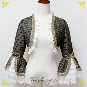 幾重にも重なった華やかなレースのお袖と可愛らしいストライプのリボンは、かつての貴婦人たちが愛したドレスの雰囲気をまとっています。